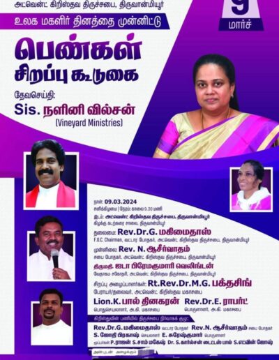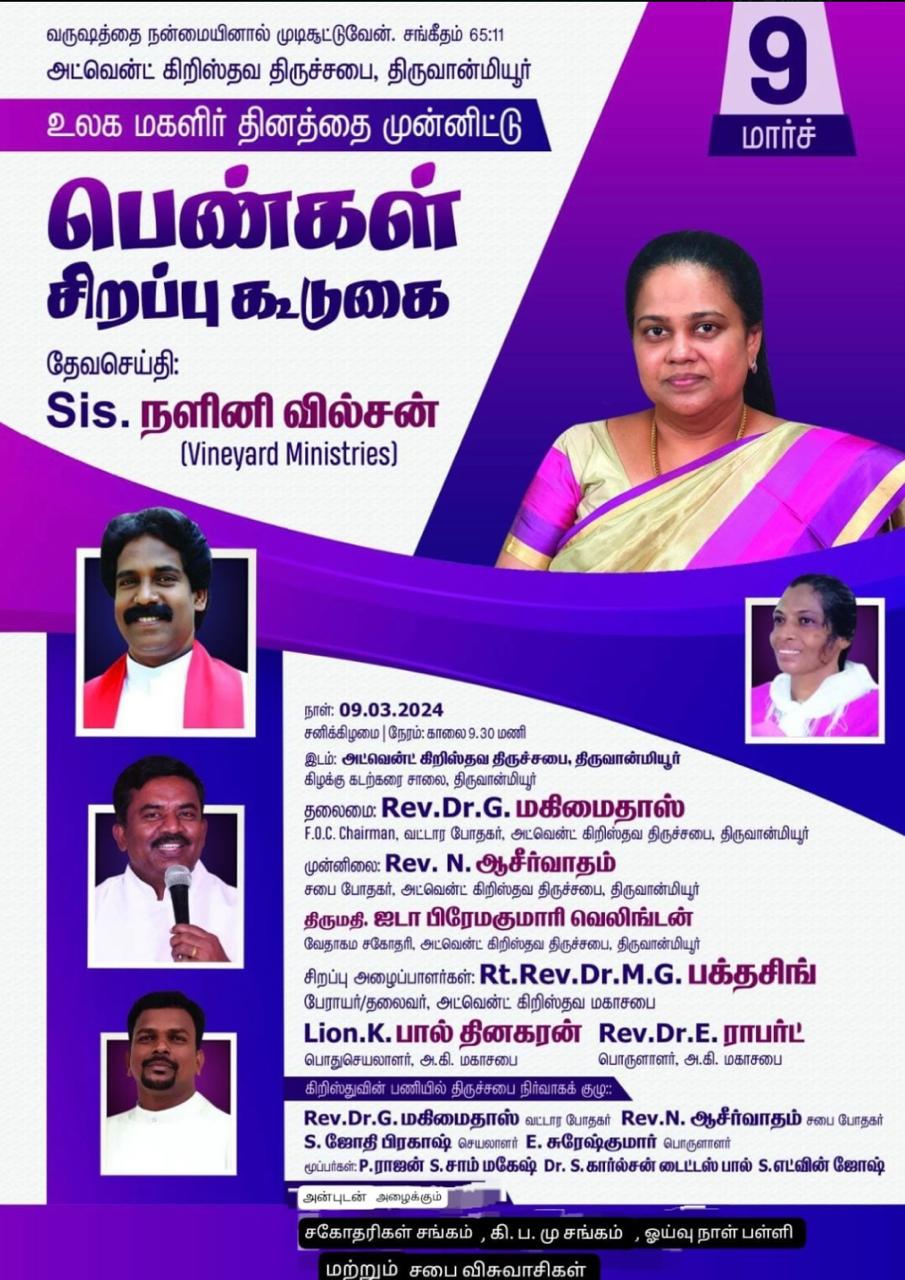 Mrs. Nalini Wilson recent Sermons are available in this section. The segment also covers important videos of our new ventures in different states in India. Write to us your questions and prayer request, We will be in touch with you.
